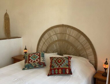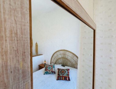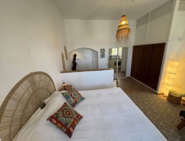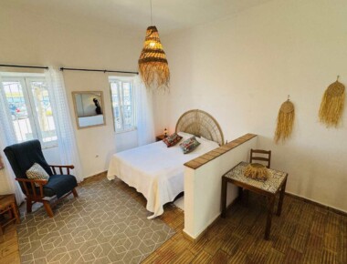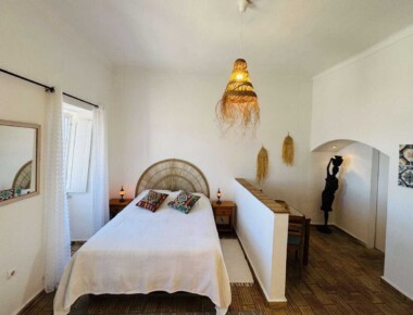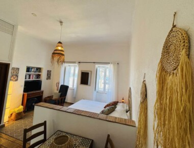 Diese sonnige Wohnung begrüsst Sie gleich am Eingang mit der gut eingerichteten Küche. Darüber liegt ein Mezzaninbett, welches Sie über die Holztreppe erreichen können. Das Mezzaninbett bietet Platz für zwei Personen. Vom Schlafzimmer einem wunderbaren Ausblick auf die Lagune der Ria Formosa. Im Wohnzimmer ist ein grosses Doppelbett integriert. Sichtgeschützt durch einen halbhohen Sims. Diese Wohnung hat Platz für max. 4 Gäste.
